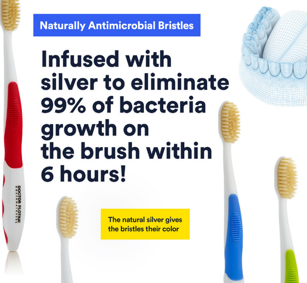 • Silver-infused bristles naturally eliminate 99% of bacteria, viruses and fungi within 6 hours. Morning or night, you can rely on clean bristles!